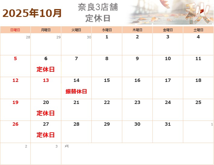 10月のお休み